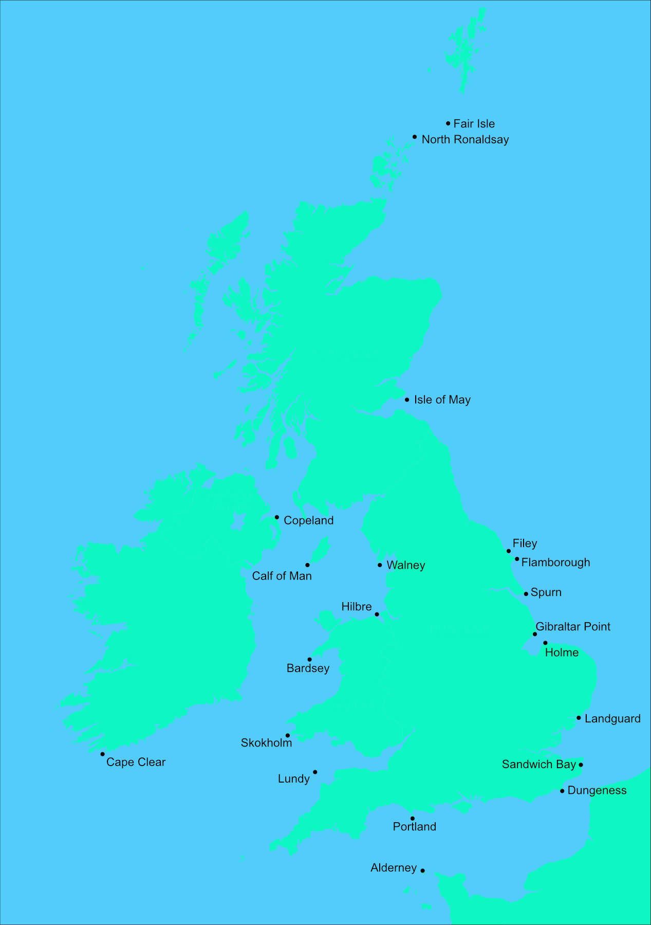 Map of the observatories of Britain and Ireland